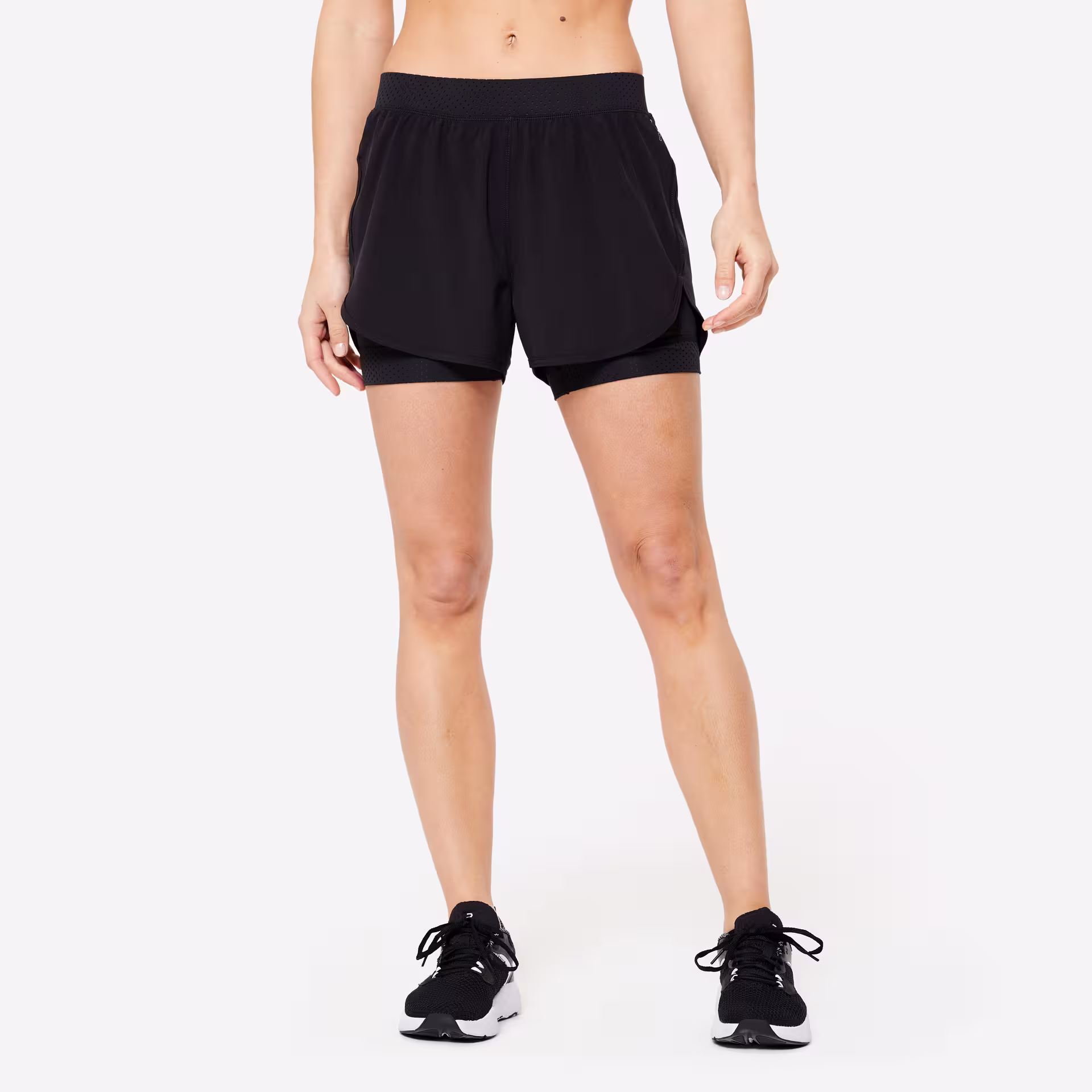 กางเกงขาสั้นแบบ 2-in-1 สำหรับผู้หญิงใส่ออกกำลังกายแบบคาร์ดิโอรุ่น 900 (สีดำ) DOMYOS